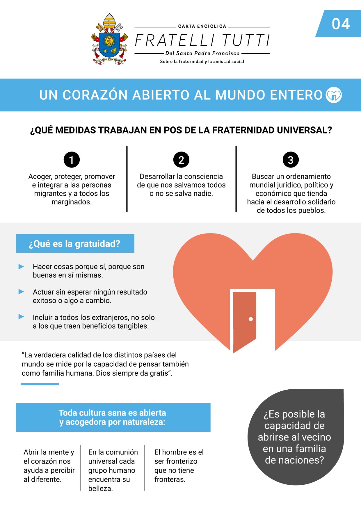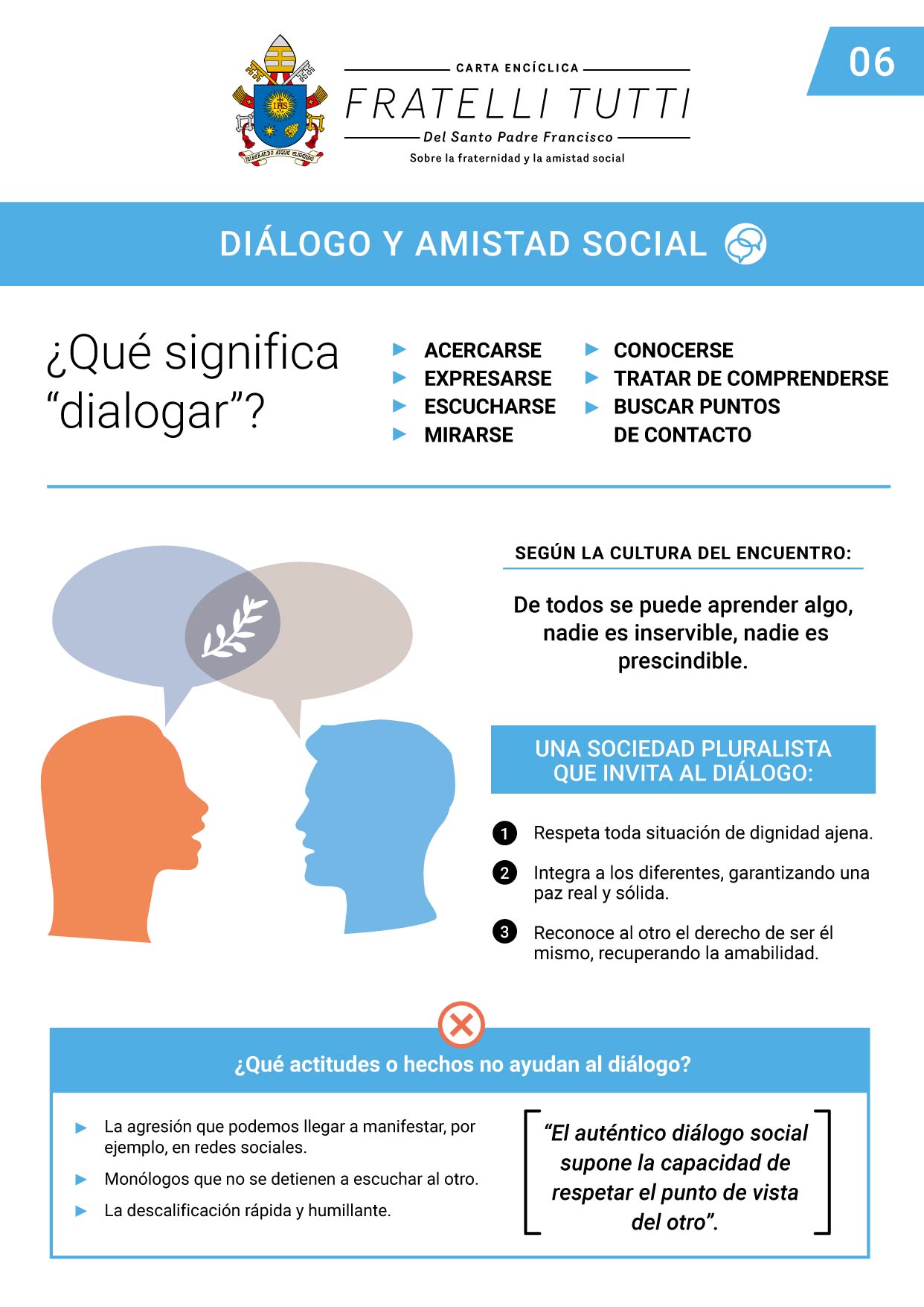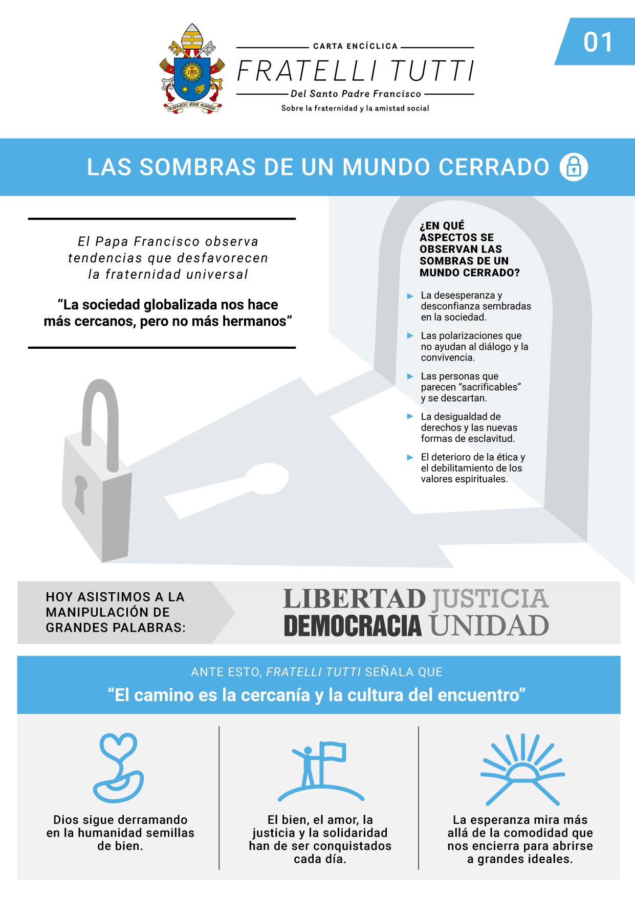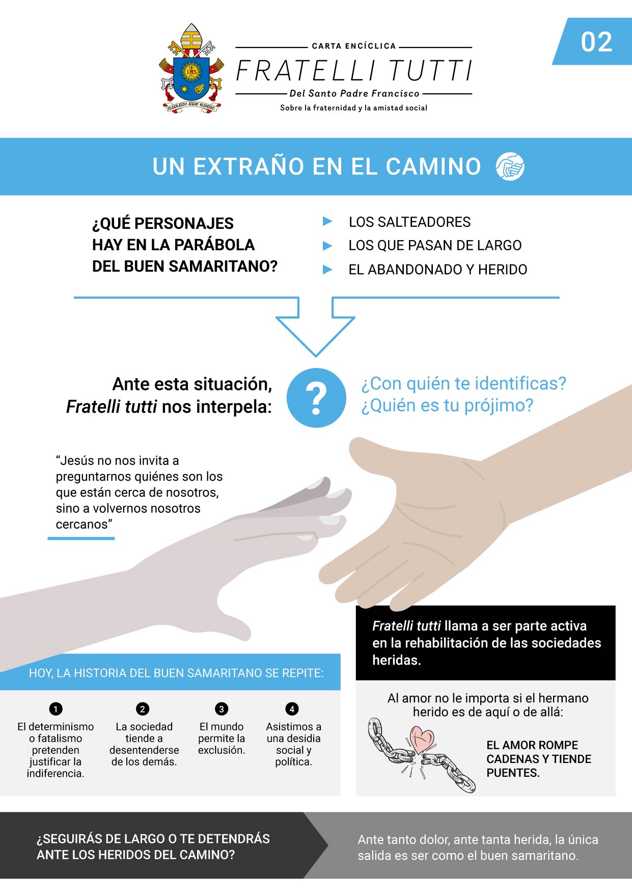 Estimados Cohermanos,Durante El Ángelus del bendecido día de hoy, en la fiesta del Seráfico Padre, San Francisco de Asís, el Papa Francisco lanzó oficialmente la publicación de su encíclica titulada Fratelli Tutti, que habla de la fraternidad y la amistad social. Estoy seguro de que un buen número de ustedes fueron testigos de este acontecimiento trascendental a través de las diferentes redes sociales. Con este comunicado, quisiera exhortarles a leer y meditar, a nivel personal y comunitario, esta encíclica que llega en un momento oportuno, a un mundo que necesita desesperadamente de un mensaje de esperanza, especialmente sobre cómo relacionarnos los unos con los otros. Ruego que después de leer y meditar la encíclica, el contenido de Fratelli Tutti nos inspire a buscar formas concretas de poner en práctica las ideas y exhortaciones en ella contenidas. Abajo encontrarán los enlaces para acceder a la copia electrónica de la encíclica. Queridos cohermanos, creo que no hace falta recordarles que ustedes son los más indicados para promover la máxima difusión de Fratelli Tutti. Por lo tanto, les pido por favor que utilicen todos los medios a su alcance para difundir la encíclica para que ella llegue al máximo número de nuestros hermanos y hermanas (socios laicos, feligreses, personal y estudiantes de nuestros colegios, etc.). Al mismo tiempo, anímenlos y anímenlas a leer, meditar, discutir y poner en práctica el contenido de esta carta encíclica que fue escrita desde el corazón del Santo Padre. ¡Tengan todos una muy bendita fiesta de San Francisco de Asís! ¡A todos les deseo una feliz y fructífera lectura! Fraternalmente en el Verbo Divino, Paulus Budi Kleden, SVD <>Fratelli Tutti: [en] [es] Resena FRATELLI TUTTI Panoramica breve Preguntas y respuestas Video Infografia Infografia 1 - Cap 1 Infografia 2 - Cap 2 Infografia 3 - Cap 3 Infografia 4 - Cap 4 Infografia 5 - Cap 5 Infografia 6 - Cap 6 Infografia 7 - Cap 7 Infografia 8 - Cap 8 Otros materiales: USG - Hermanos y hermanas unidos por el futuro de la humanidad |